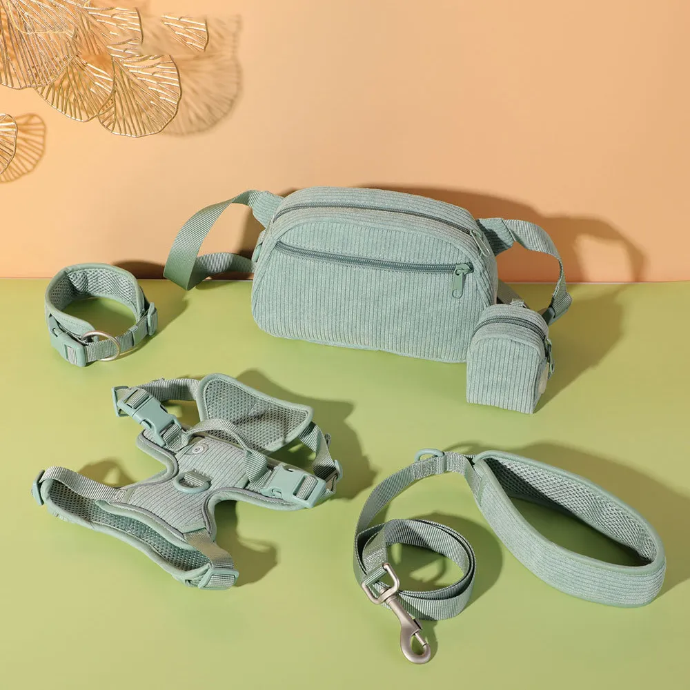 Wholesale Pet Dog Traction Rope Collar Back Clothing Mini Schoolbag Poop Bag Five-Piece Set